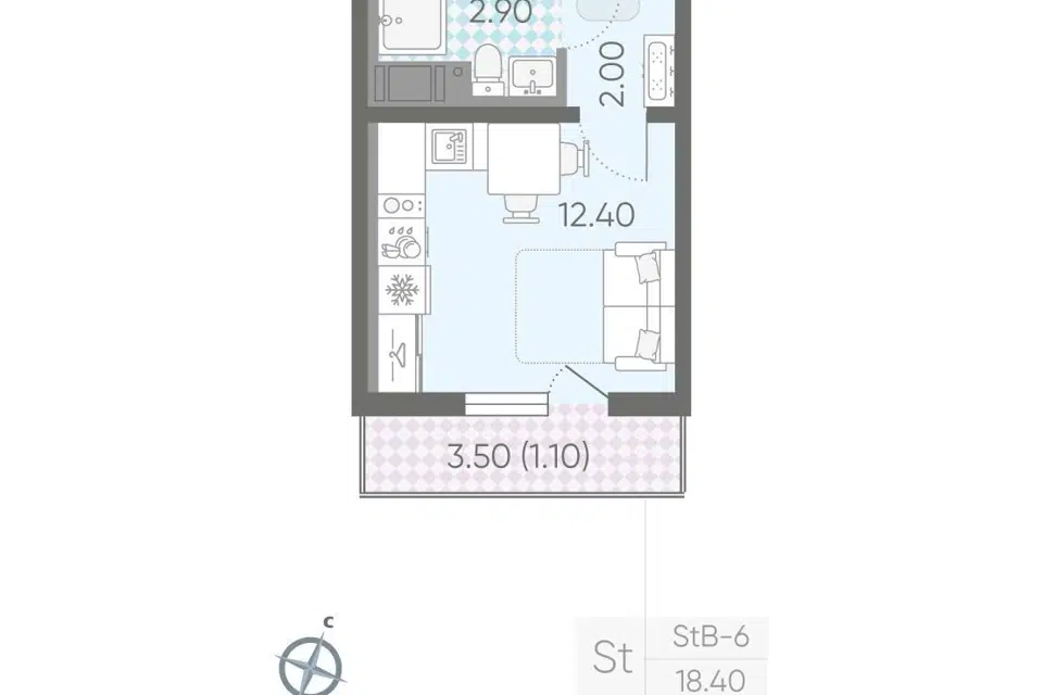Студия, 18.4 м², 3/26 этаж