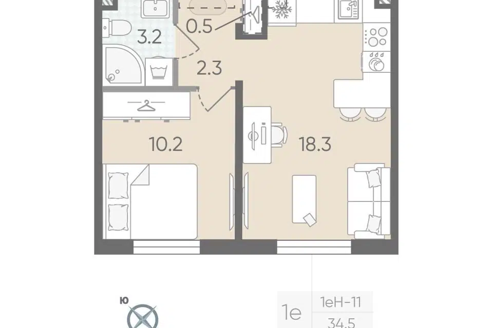 1-комн. кв., 34.5 м², 3/23 этаж