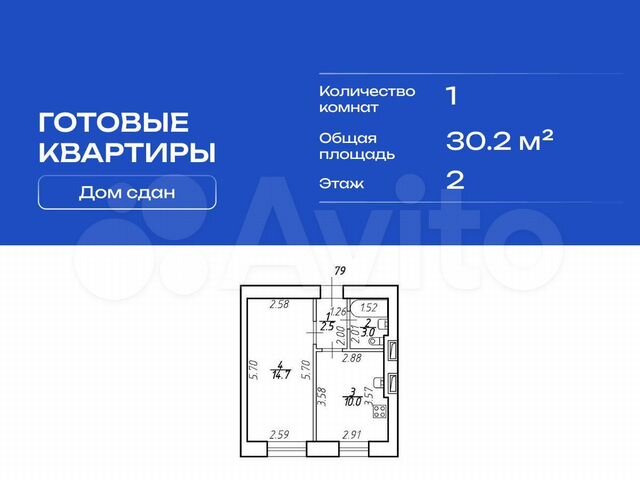1-комн. кв., 30.2 м², 2/9 этаж