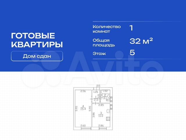 1-комн. кв., 32 м², 5/9 этаж