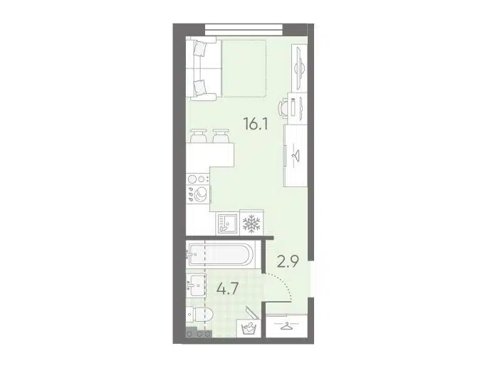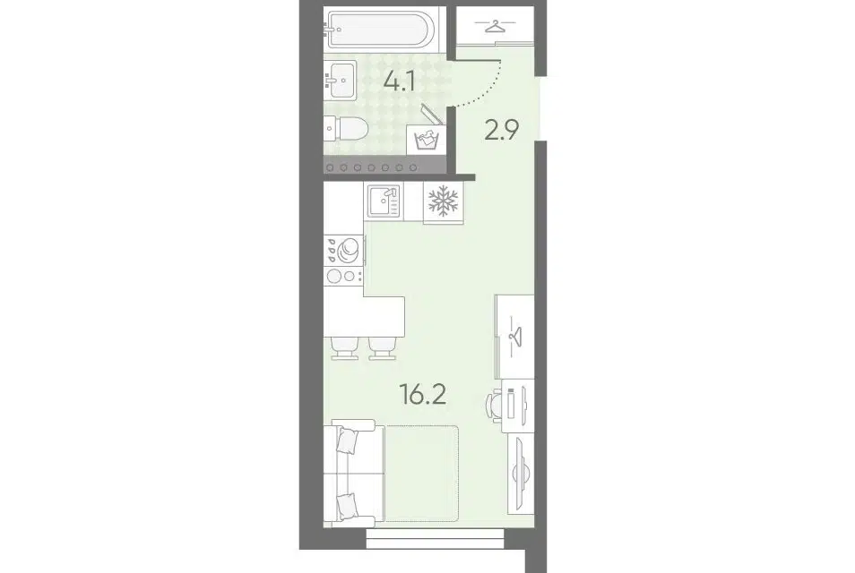 Студия, 24.24 м², 9/12 этаж
