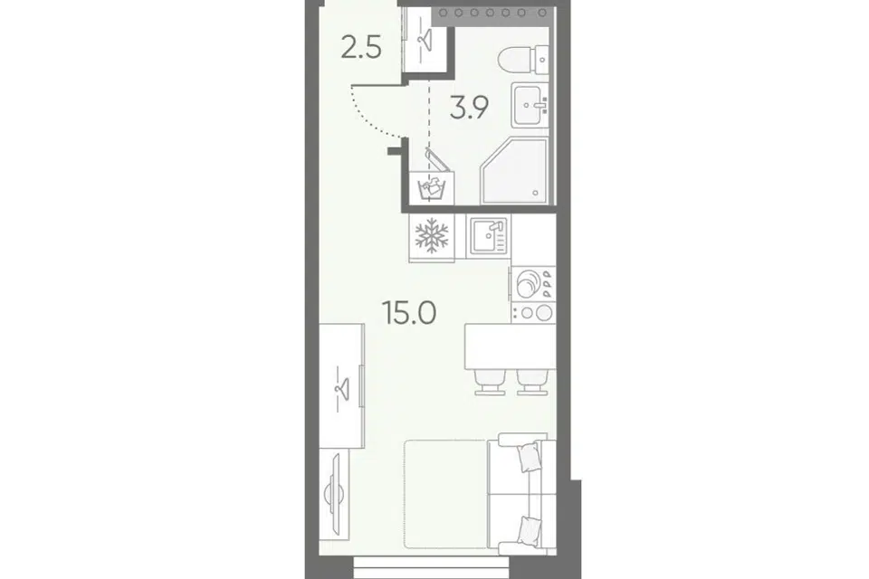 Студия, 21.5 м², 3/5 этаж