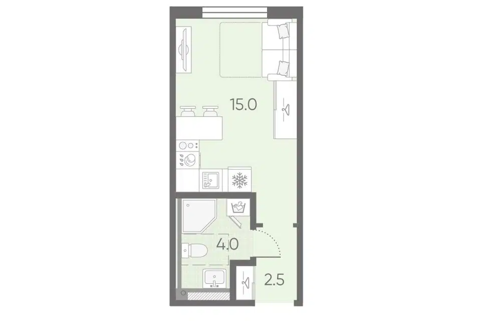 Студия, 26.5 м², 10/11 этаж