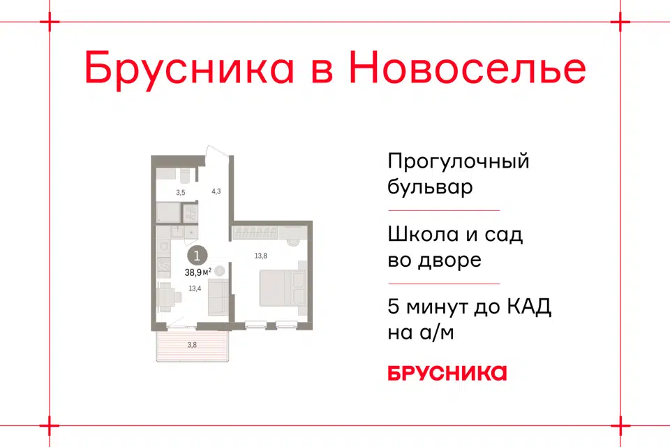 1-комн. кв., 38.9 м², 7/9 этаж
