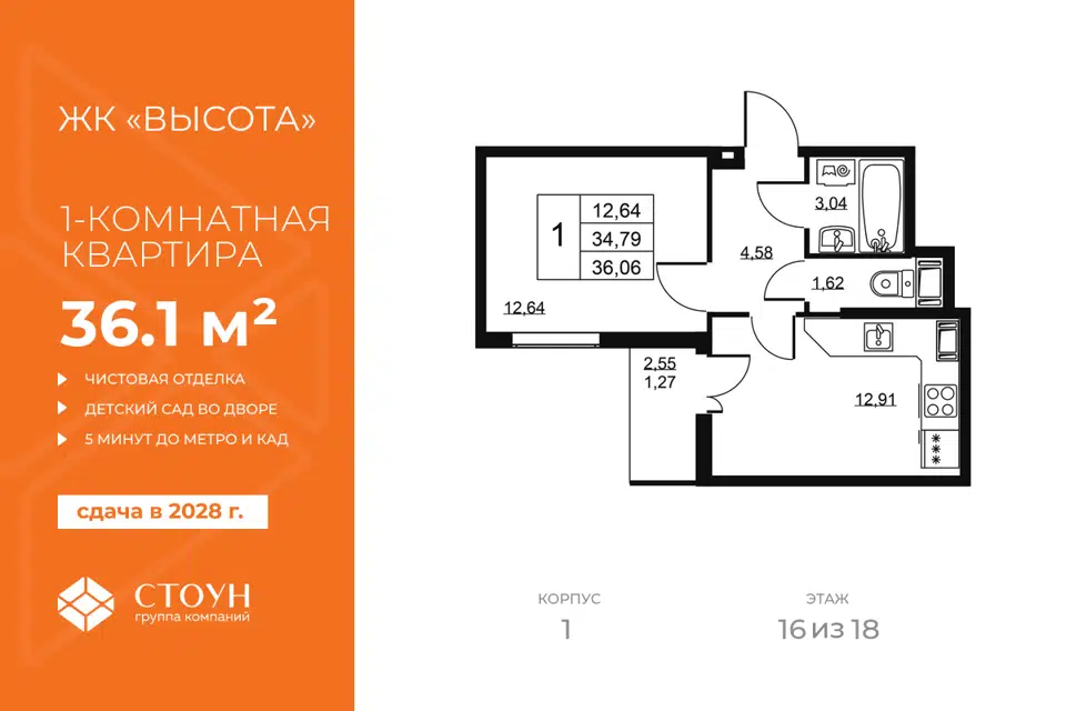 1-комн. кв., 36.06 м², 14/19 этаж