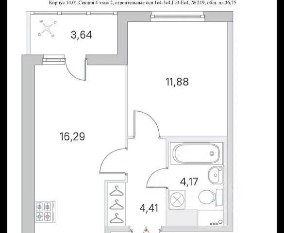 1-комн. кв., 28.88 м², 9/11 этаж