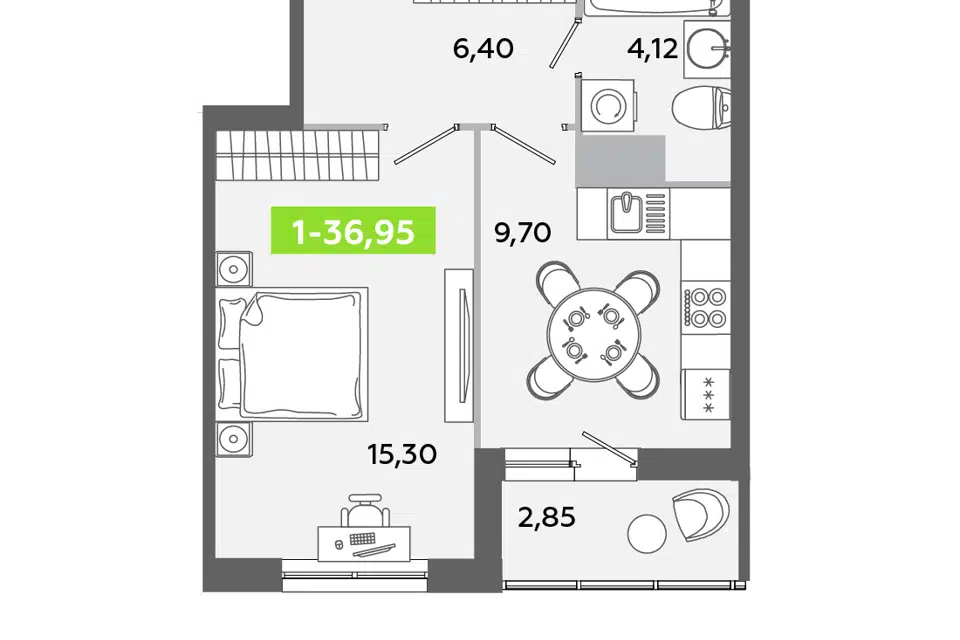 1-комн. кв., 36.95 м², 9/12 этаж
