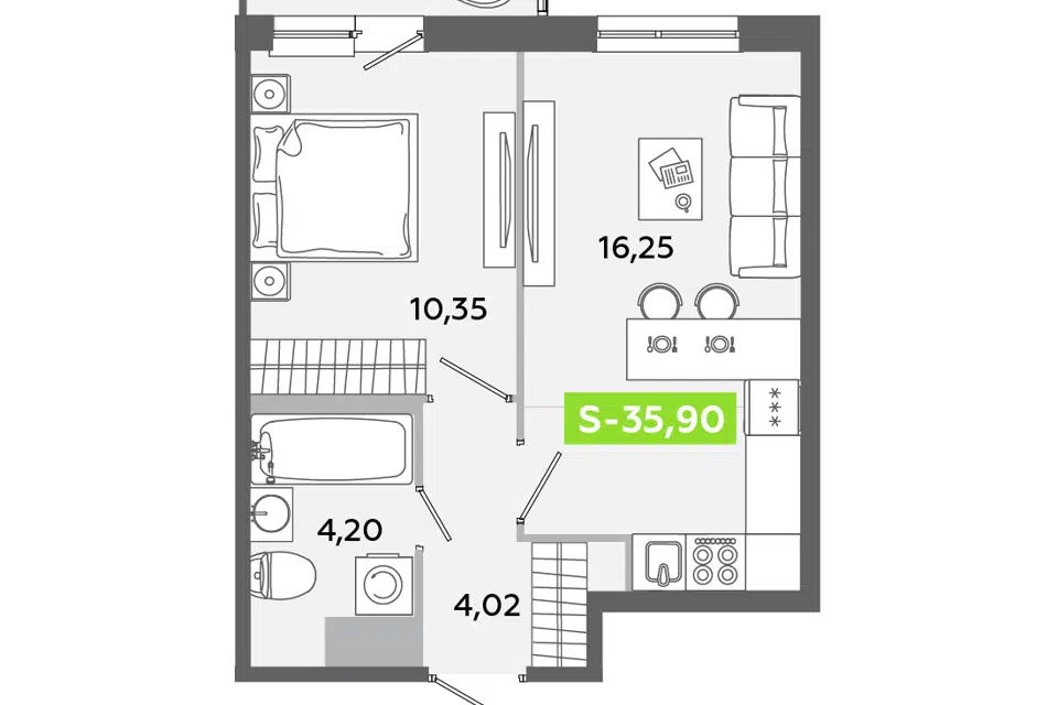 1-комн. кв., 35.9 м², 3/12 этаж