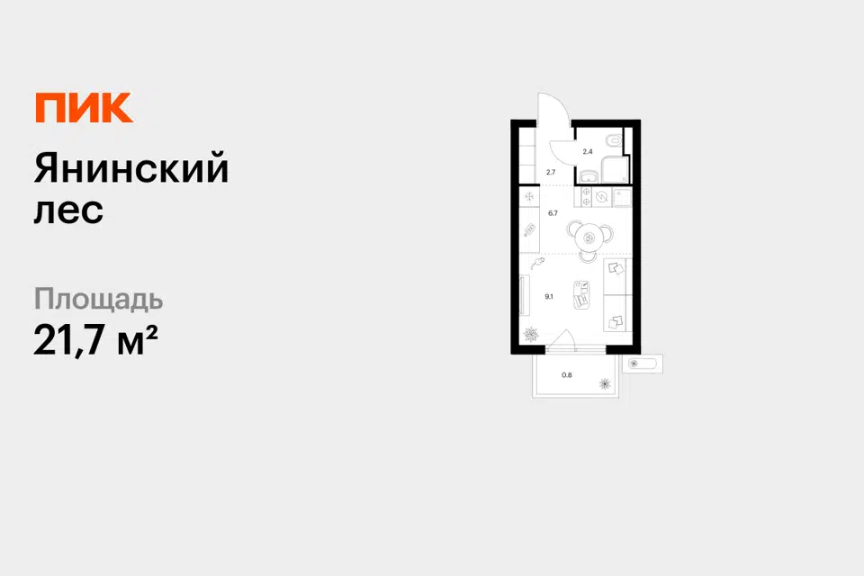 Студия, 21.7 м², 4/15 этаж