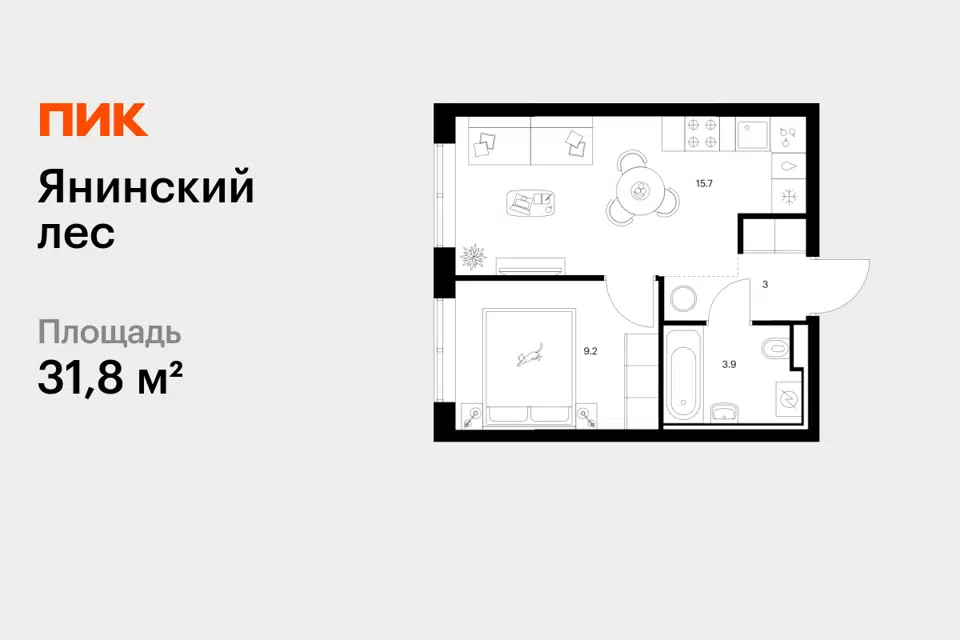 1-комн. кв., 31.8 м², 1/15 этаж