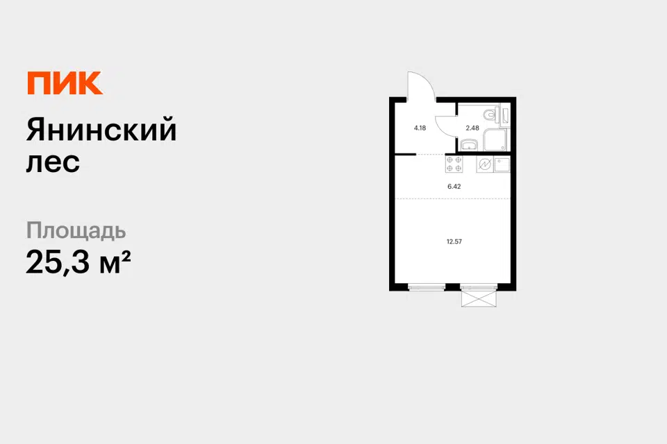 Студия, 25.3 м², 7/15 этаж