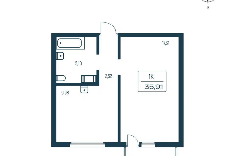 Студия, 25.74 м², 5/9 этаж