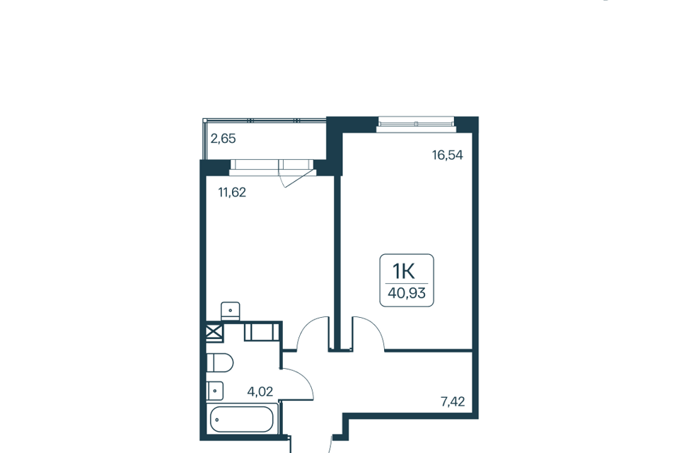 1-комн. кв., 40.93 м², 2/12 этаж
