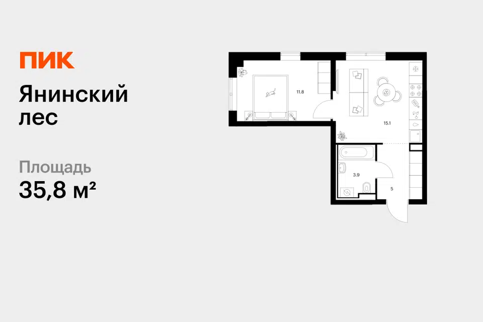 1-комн. кв., 35.8 м², 1/15 этаж