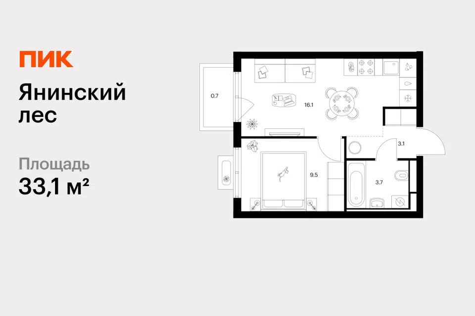 1-комн. кв., 33.1 м², 5/15 этаж
