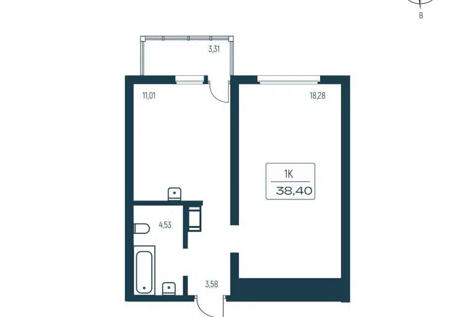 1-комн. кв., 38.2 м², 11/11 этаж