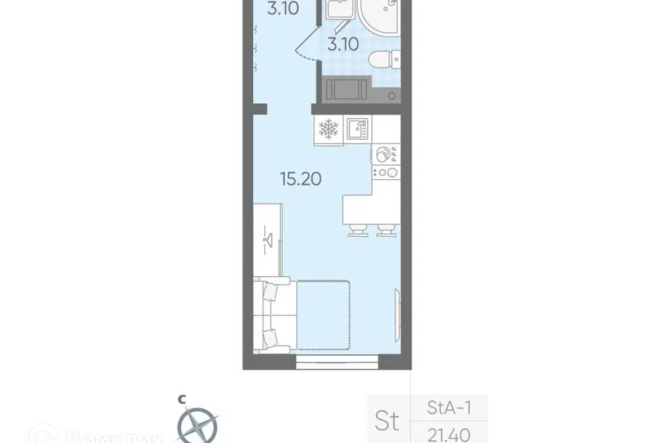 Студия, 21.2 м², 4/20 этаж