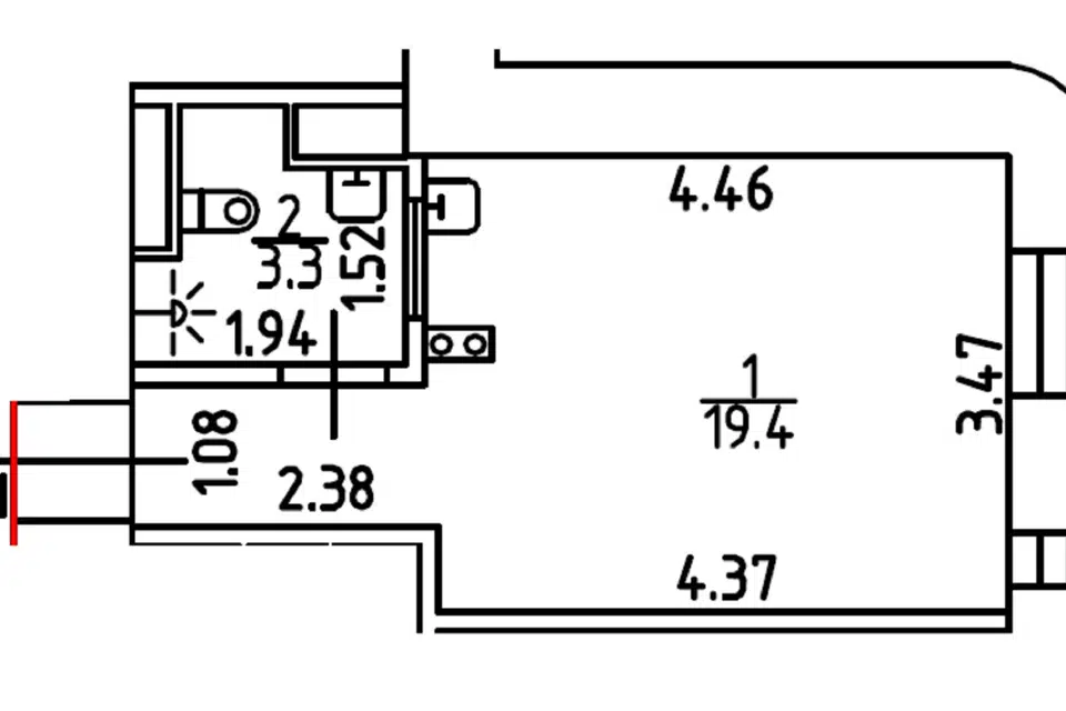 Студия, 12.5 м², 2/6 этаж
