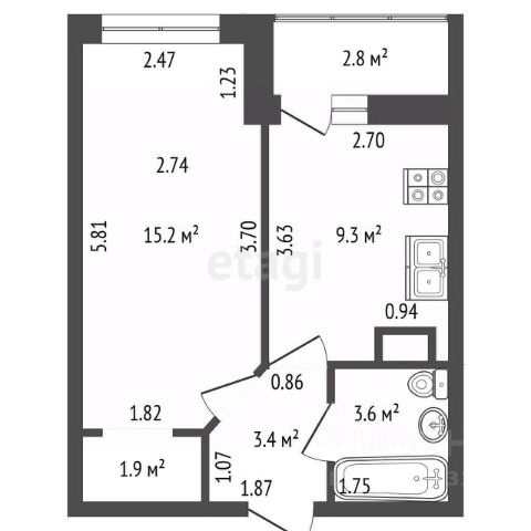 1-комн. кв., 31.1 м², 9/9 этаж