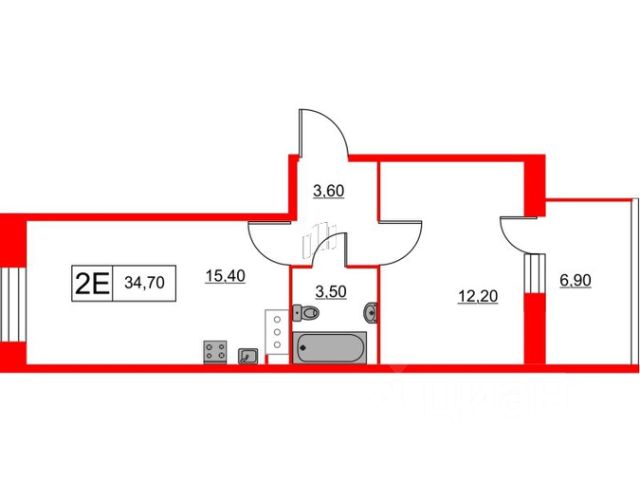 В квартире две просторные отдельные комнаты, балкон, раздельный санузел, в прихожей есть ниша под вместительный шкаф-купе или гардеробную.