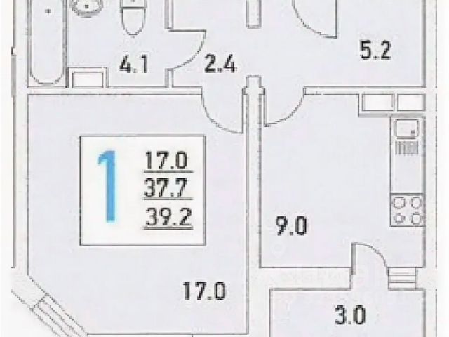1-комн. кв., 39.42 м², 9/12 этаж