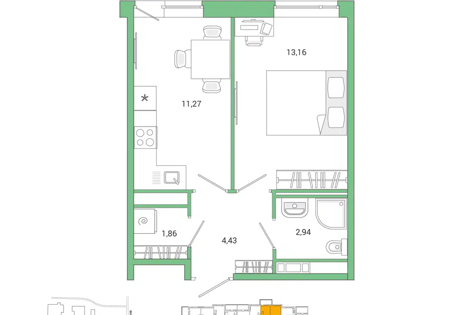 Студия, 26.4 м², 11/12 этаж