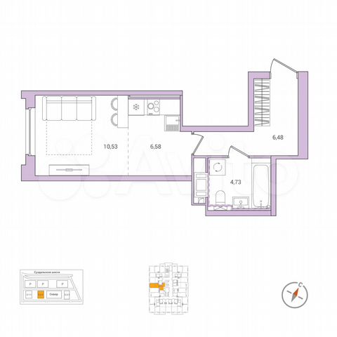 Студия, 21.5 м², 13/21 этаж