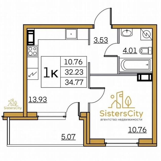 1-комн. кв., 34.8 м², 11/13 этаж