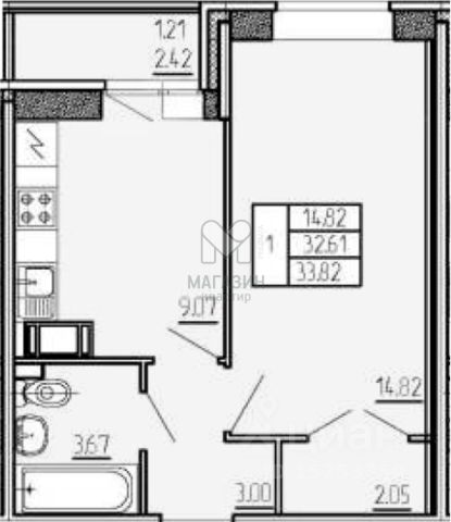 1-комн. кв., 32.6 м², 1/17 этаж