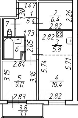 2-комн. кв., 59.6 м², 7/12 этаж