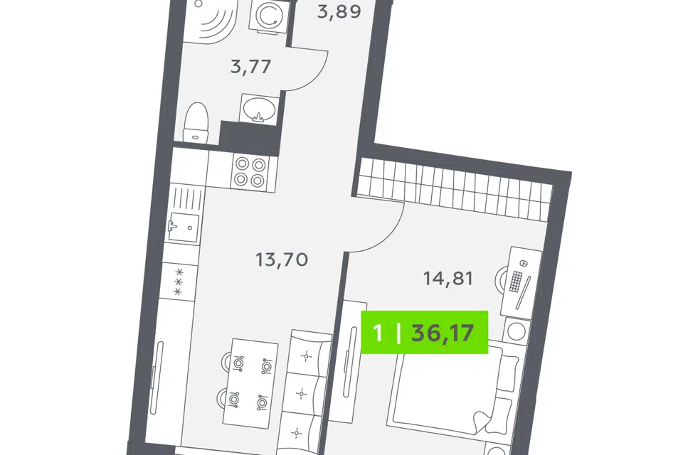 1-комн. кв., 36.17 м², 12/20 этаж