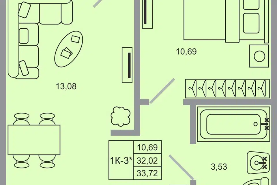 1-комн. кв., 32.81 м², 5/17 этаж