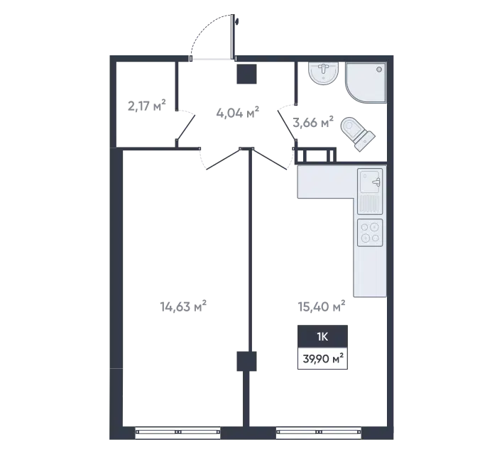 1-комн. кв., 40.5 м², 14/18 этаж