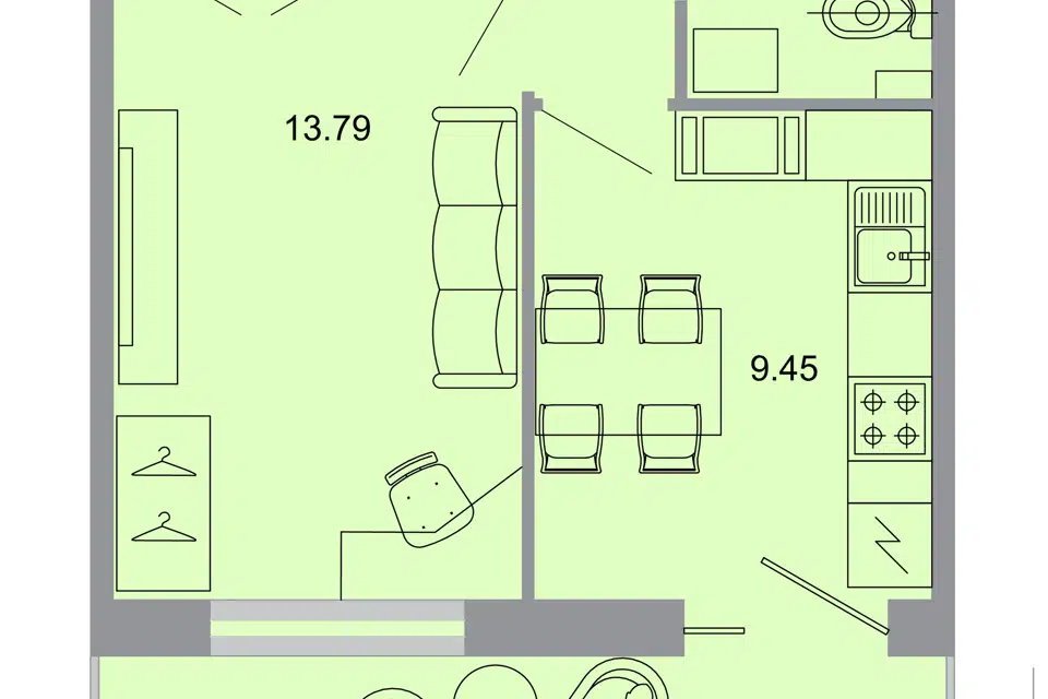 1-комн. кв., 38.37 м², 4/13 этаж
