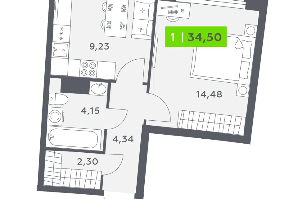 1-комн. кв., 34.5 м², 8/20 этаж