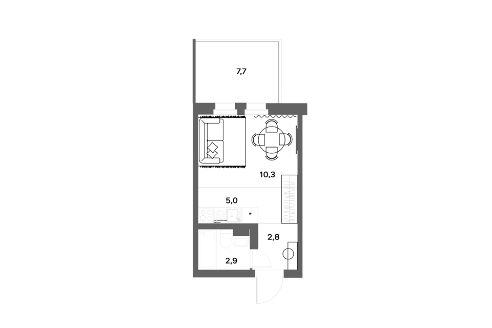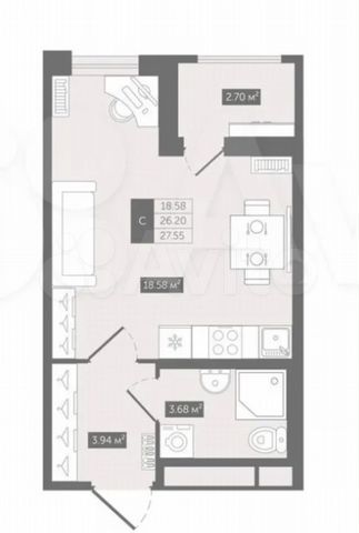 Студия, 28.55 м², 3/18 этаж