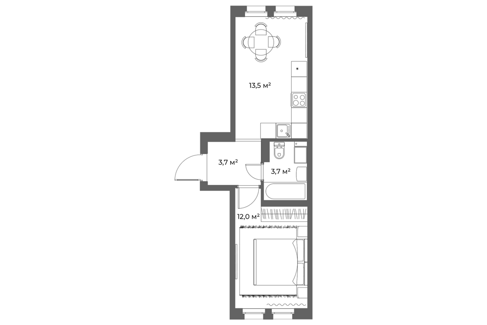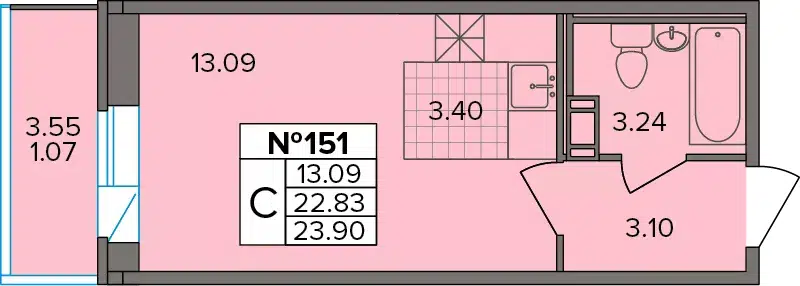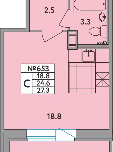 Студия, 24.91 м², 6/13 этаж