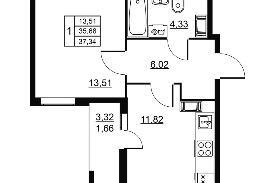 1-комн. кв., 37.34 м², 4/18 этаж