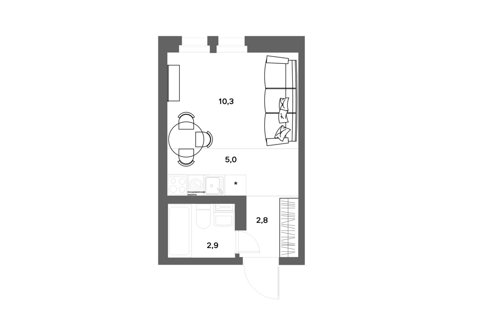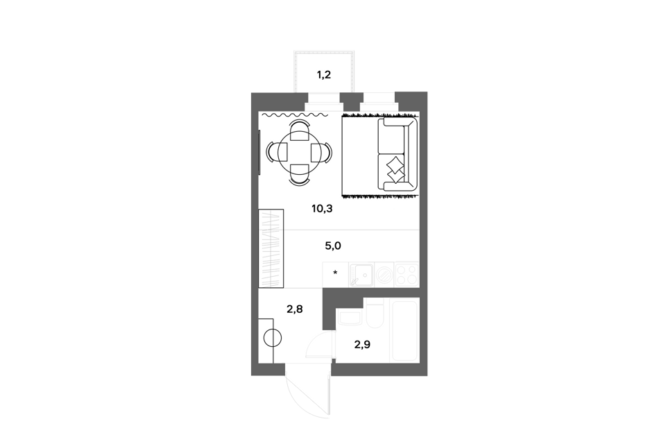Студия, 27.3 м², 5/12 этаж