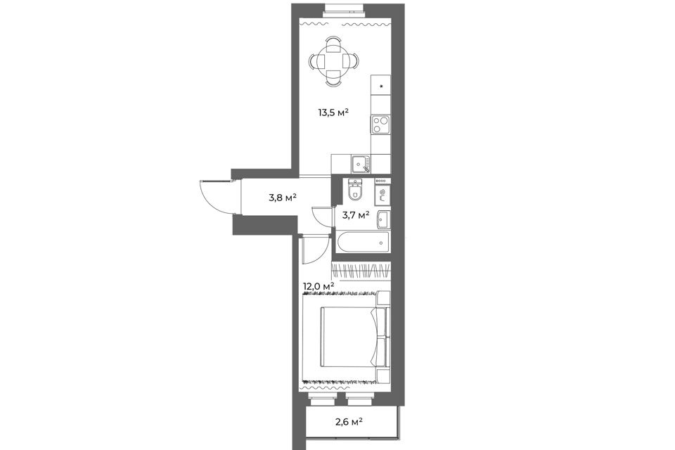 Студия, 26.2 м², 11/20 этаж