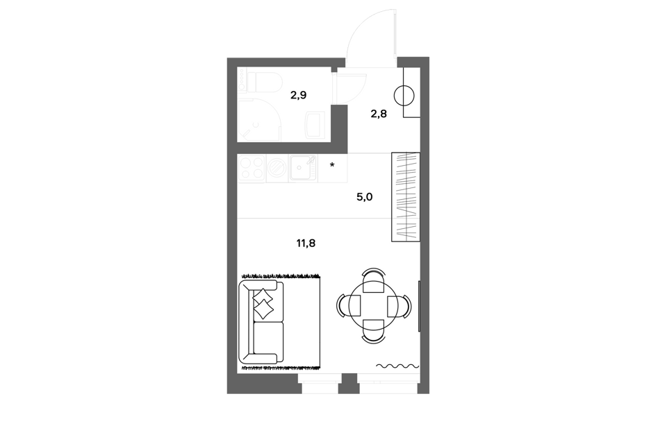 Студия, 28.91 м², 3/18 этаж