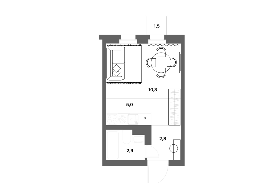 1-комн. кв., 30.1 м², 15/20 этаж