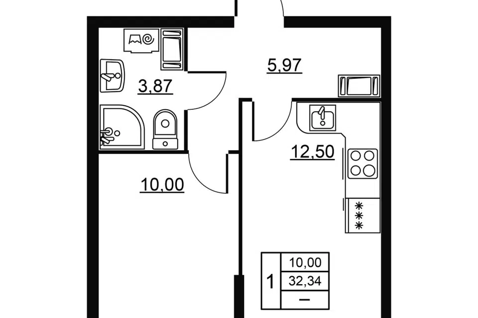 1-комн. кв., 32.44 м², 3/18 этаж