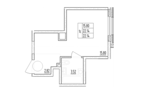 Студия, 22.14 м², 5/13 этаж