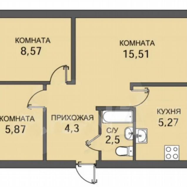 3-комн. кв., 41.6 м², 4/5 этаж
