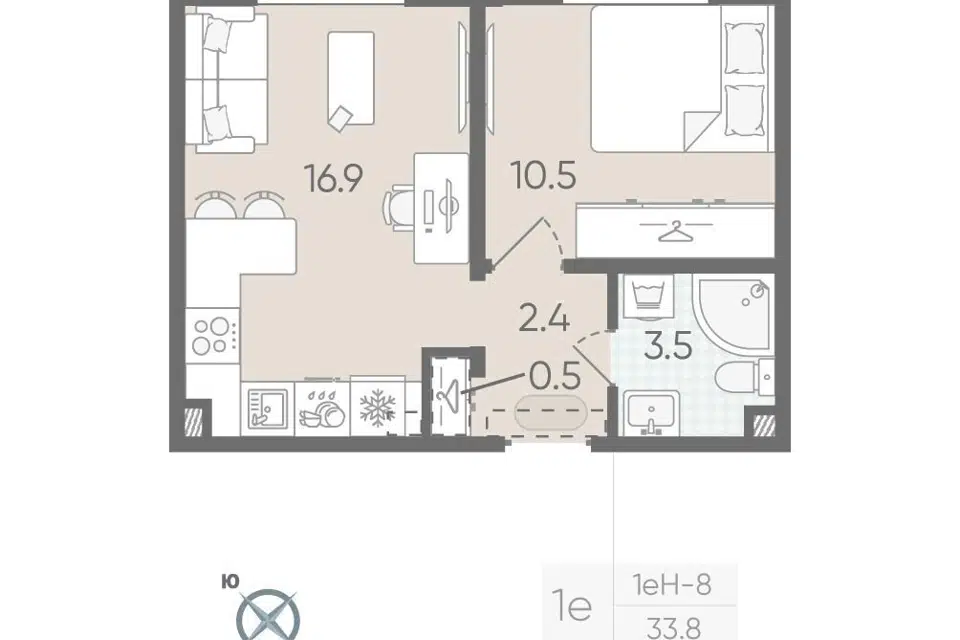 1-комн. кв., 33.8 м², 9/24 этаж