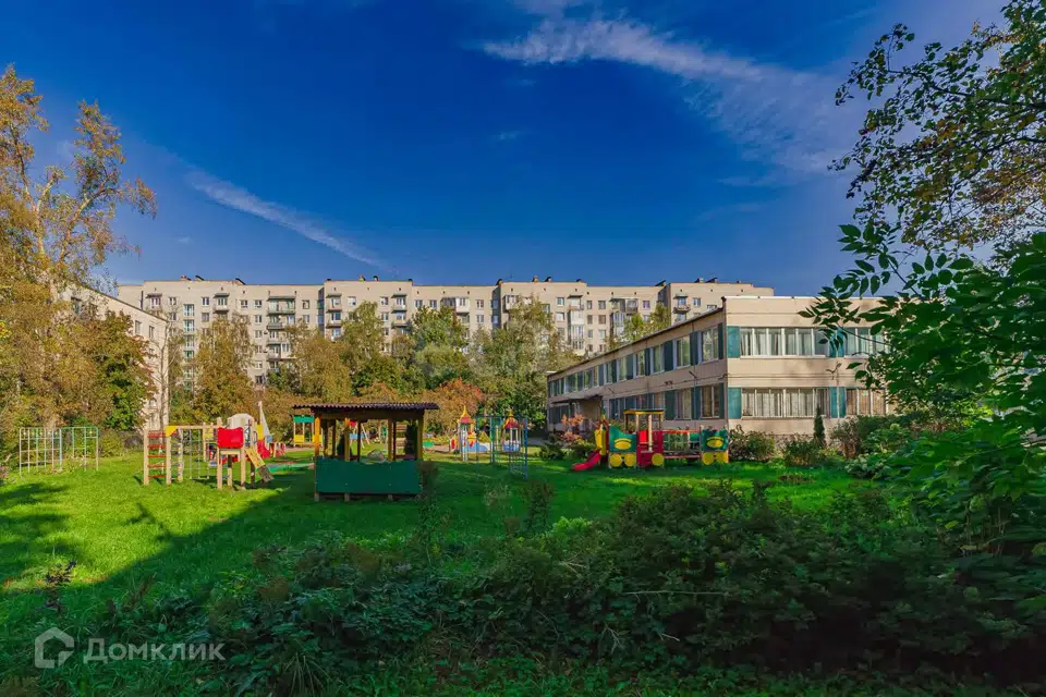 Об удачном местоположении говорит наличие обширного парка в шаговой доступности, богатой инфраструктуры - магазины, аптеки, торговые центры, кинотеатры, спортзалы и многое другое, а также близость к метро - всего 4 остановки или 10 минут, и Вы на ст.м. Проспект Ветеранов.