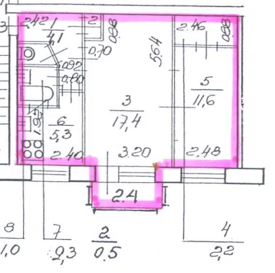 3-комн. кв., 41 м², 6/6 этаж