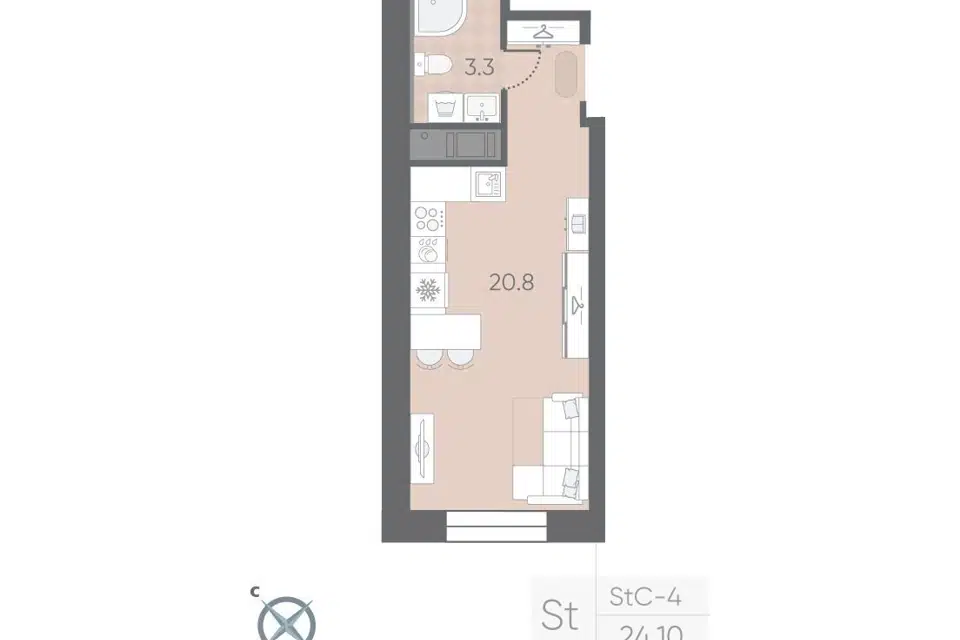 Студия, 24.1 м², 3/14 этаж