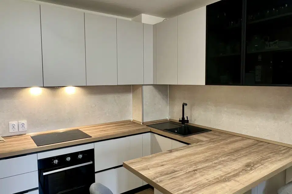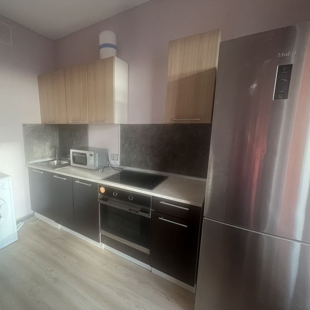 Всё что на фото входит в стоимость квартиры: кухонная мебель, варочная панель, духовой шкаф, холодильник, стиральная машина, мебель в ванной, шкаф в коридоре.